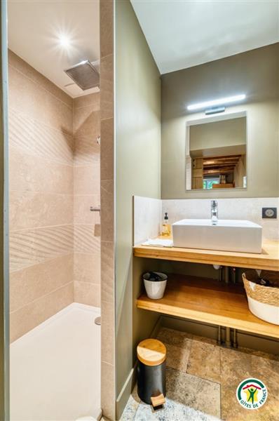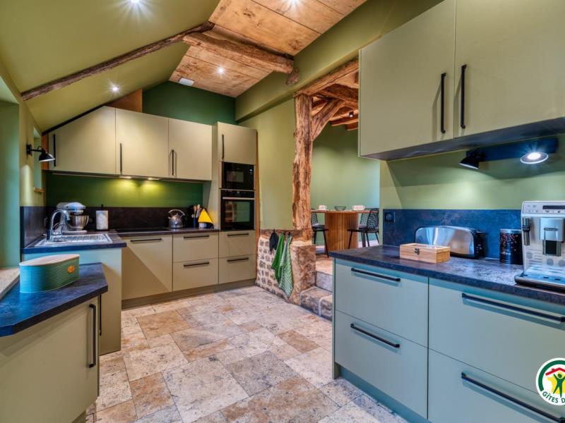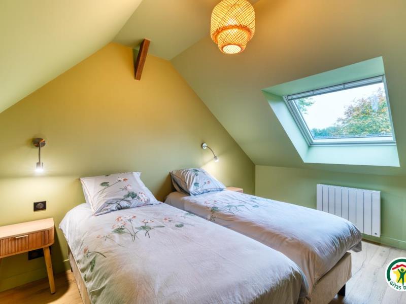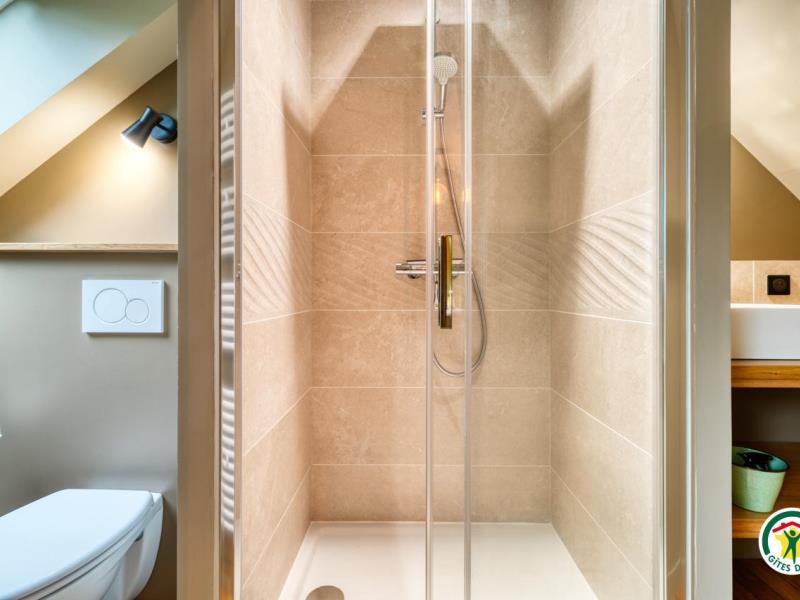 Gîte mitoyen avec les propriétaires RDC: -Cuisine semi ouverte sur le salon/séjour avec tout l’équipement nécessaire ( réfrigérateur, micro-onde, plaque à induction, machine à café type Expresso Broyeur, bouilloire, grille-pain, robot pâtissier), -Salon/séjour avec table à manger, coin salon et accès au jardin, -Suite parentale avec salle d’eau privative équipé d’un lit en 160x200cm et d’une grande douche à l’italienne, -Buanderie avec lave-linge et sèche-linge, -WC indépendant avec lave-main. 1er étage: -Palier avec un espace détente composé de 2 fauteuils et d’une table basse, espace bureau avec une prise électrique et une prise internet à côté, -Chambre avec 2 lits simples jumeaux (80X190cm), -Salle d’eau avec WC, lavabo et une grande douche. Extérieur: -jardin avant exposé nord et jardin arrière exposé sud en partage avec le propriétaire avec un aménagement paysagé, -Bâtiment extérieur pour stocker des vélos, -stationnement privatif.