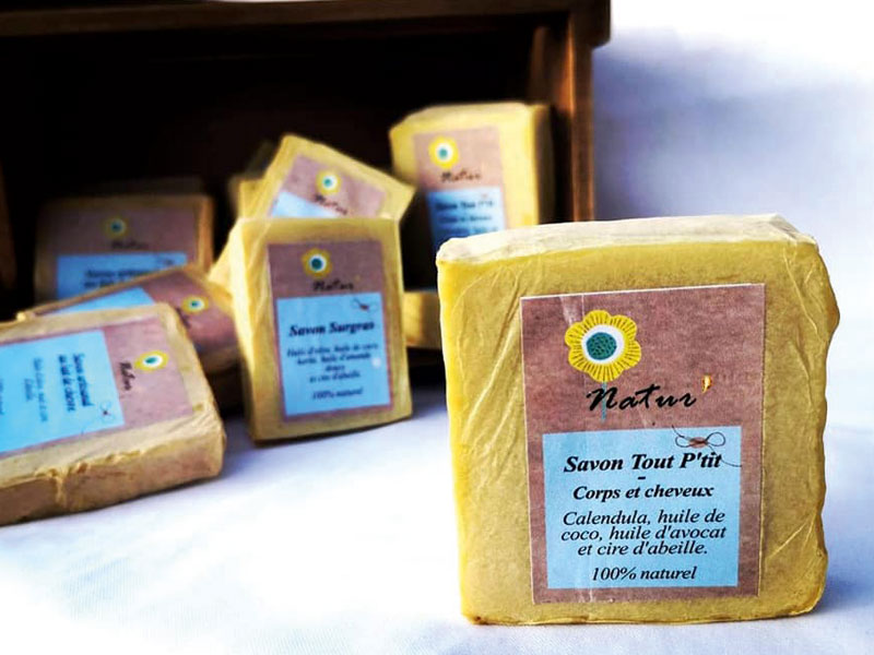 Noémie Primont travaille aujourd’hui avec plusieurs artisans et éleveurs de la région : le lait de chèvre et le miel sont normands. L’étiquetage et les accessoires sont fabriqués localement. Les sacs 100% coton sont confectionnés en famille à la maison . L’important pour Natur’ est de respecter notre environnement à chacune des étapes de fabrication.